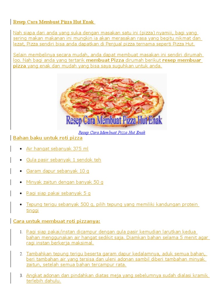 Resep Masakan Cara Membuat Pizza Hut Empuk Sederhana