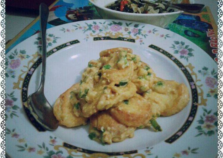 Resep Tofu Omelette Tahu Telur With Peanut Sauce Meat Floss And Garlic Chieves Dentist Chef