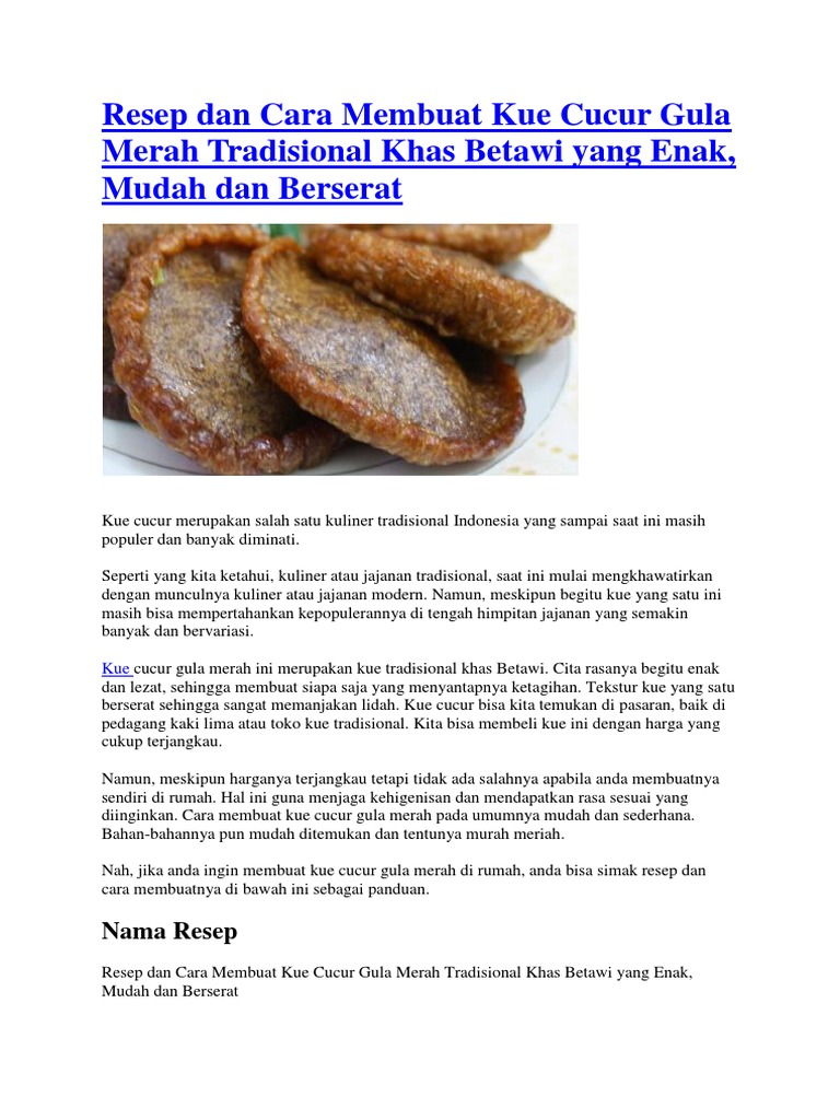 Resep Cara Membuat Kue Cucur Gula Merah Berserat Dan Lembut Resep Di 2020 Resep Kue Resep Kue
