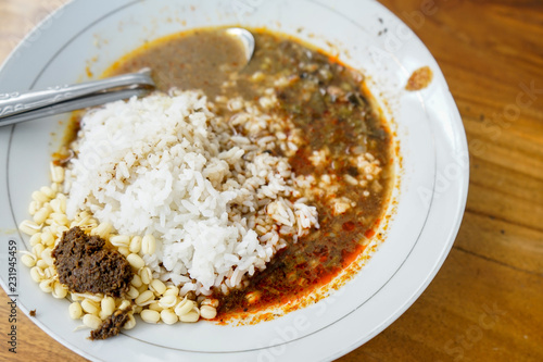Rawon Is Traditional Indonesian Beef Black Soup Served With Steam Rice Salted Egg Bean Sprouts Sambal And Krupuk Prawn Crackers Stock Photo Alamy