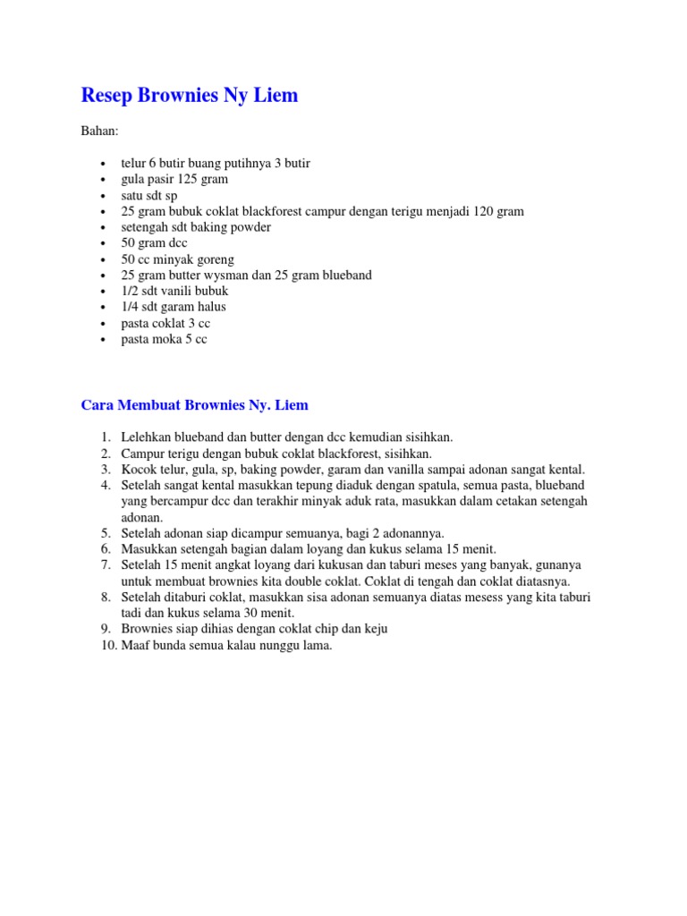 Resep Brownies Amanda 6 Telur Nikmat Dan Lezat