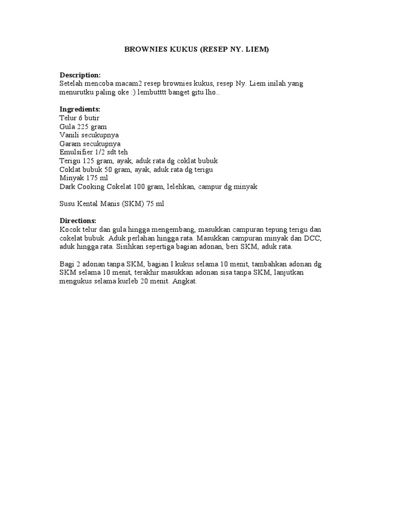 Brownies Kukus By Sukmawati Rs Ala Ny Liem Bahan 6 Butir Telur 225 Gr Gula Pasir 1 2 Sdt Emulsifier 125 Gr Tepung Ter Hidangan Penutup Resep Kue Makanan