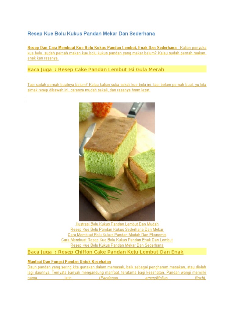 Resep Dan Cara Membuat Kue Bolu Pandan Tanpa Mentega Yang Enak Legit Dan Tetap Lembut Selerasa Com