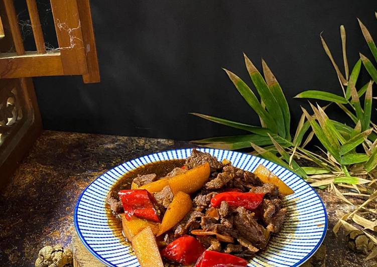 Daging Masak Kicap Pedas Posted By Mamafami Ingredients 2 Medium Potatoes Cleaned Sliced Thinly And Fry Set Aside Cook Spicy Recipes Asian Recipes Pedas