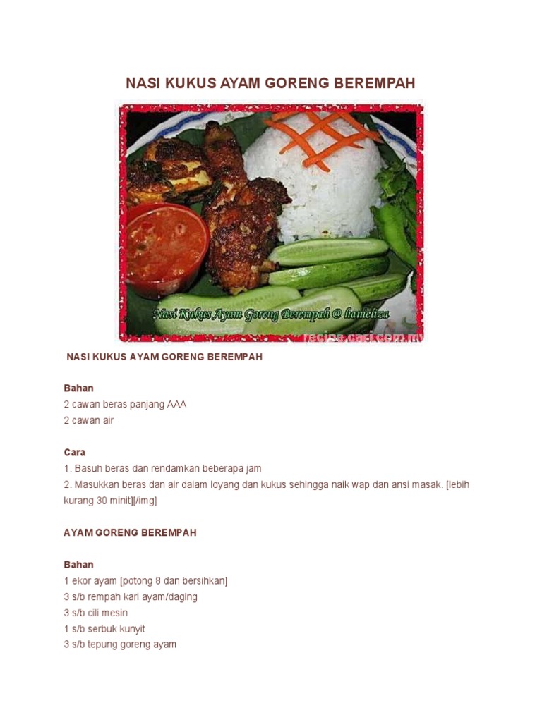 Resipi Nasi Kukus Ayam Goreng Berempah Oleh Salina Jalaludin Resep Di 2020 Ayam Goreng Resep Makanan Masakan