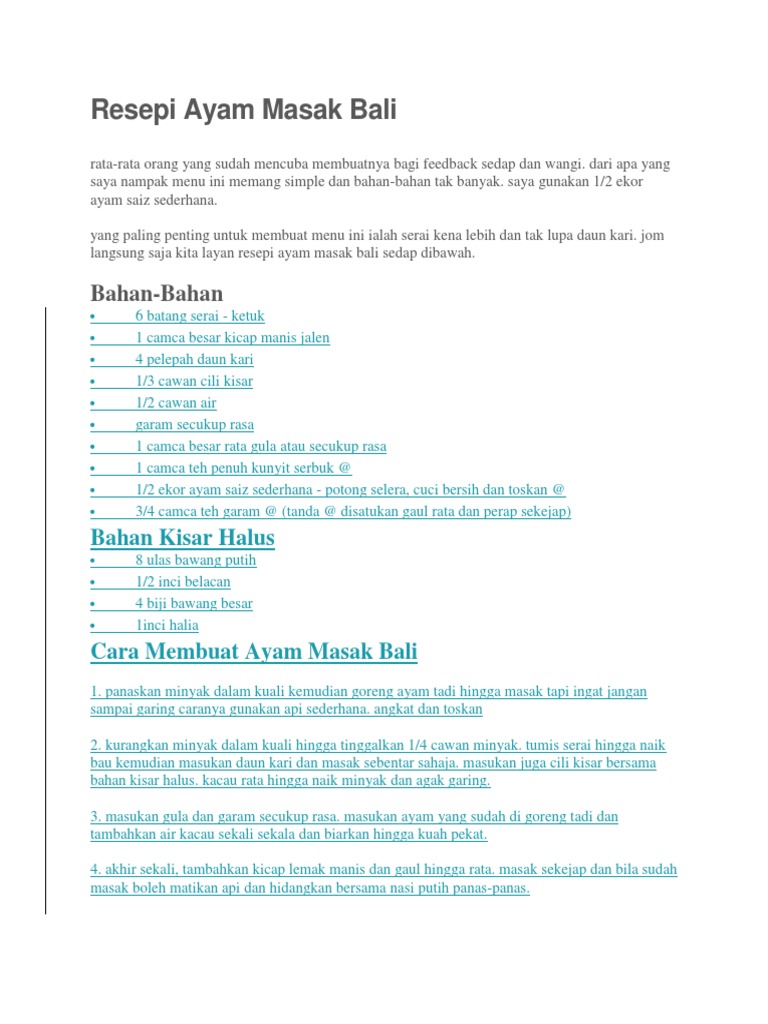 21 Resepi Ayam Masak Bali Yang Sedap Dan Mudah Oleh Komuniti Cookpad Cookpad