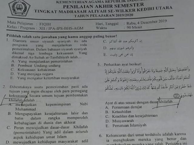 Kemenag Tarik Soal Ujian Madrasah Aliah Yang Berisi Materi Khilafah Okezone Nasional